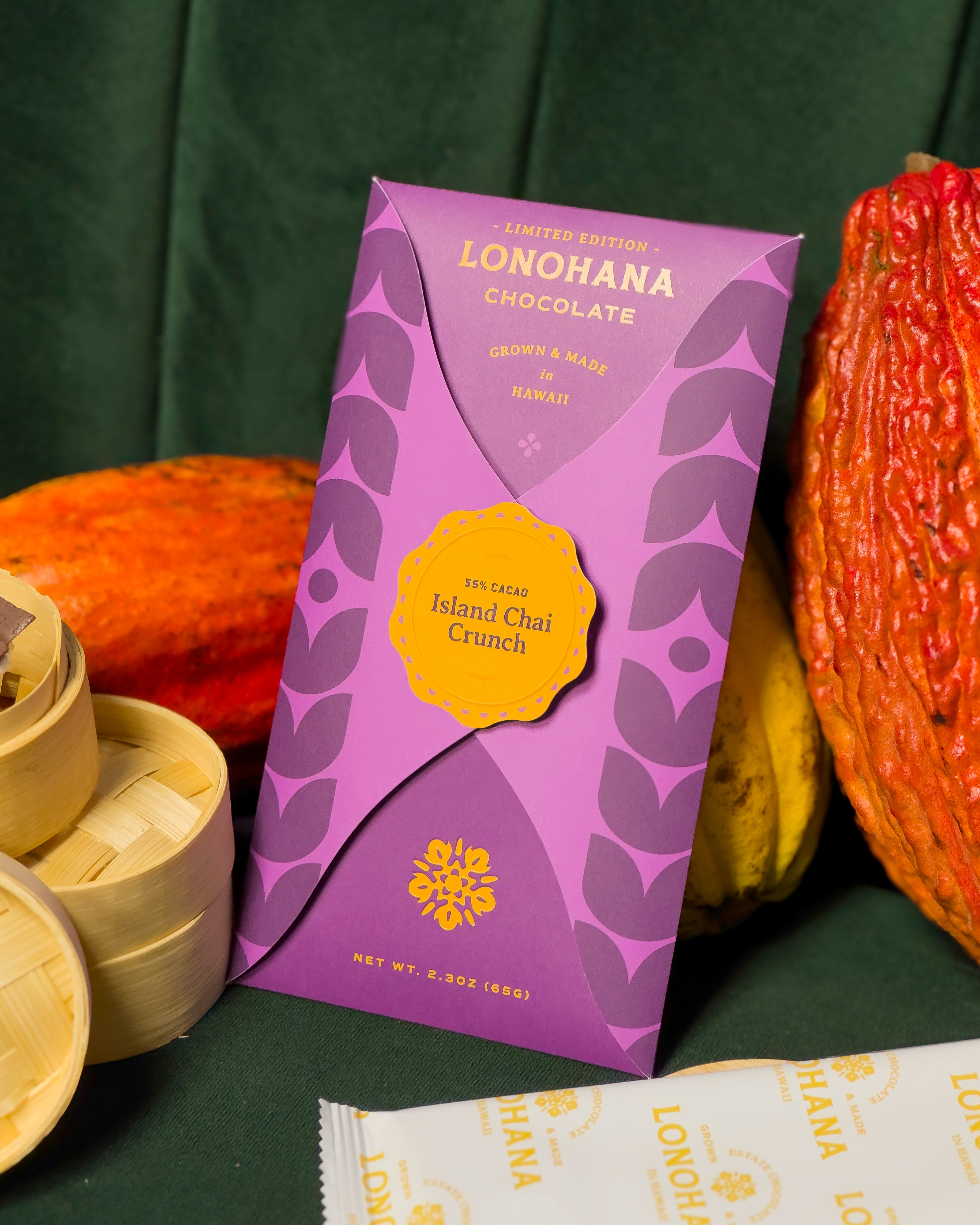 Inspired by our super-popular drink at our shop in Honolulu, we made this classic spiced beverage into a delicious chocolate bar! This rich blend of spices compliment our luscious 55% dark milk chocolate like a comforting hug for your tastebuds.