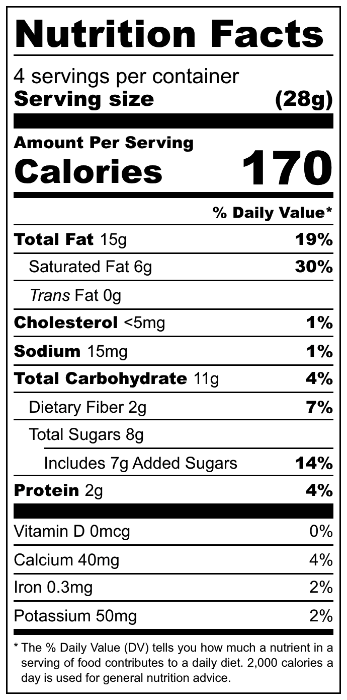 Made on equipment that also processes milk and tree nuts. Produced in a facility that handles coconut, eggs, macadamia, peanuts, sesame, soy & wheat.