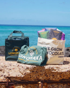 By popular demand, we now offer a variety of merchandise from shirts, bags, and even hats. Show off your support for Hawaii-grown cacao every day.