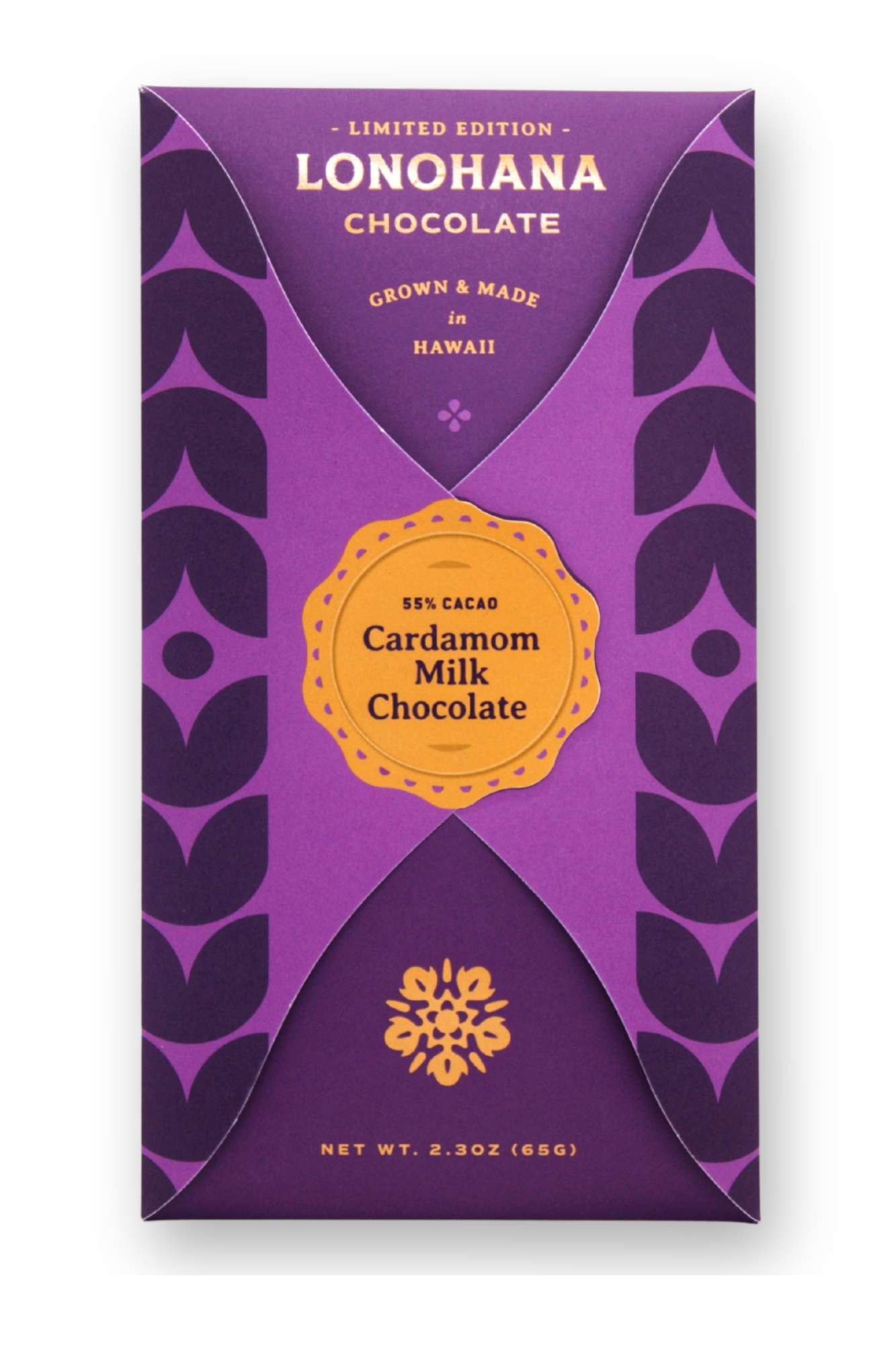 Ingredients: Hawaii-grown cacao, organic cane sugar, organic whole milk powder, organic cocoa butter & cardamom oil