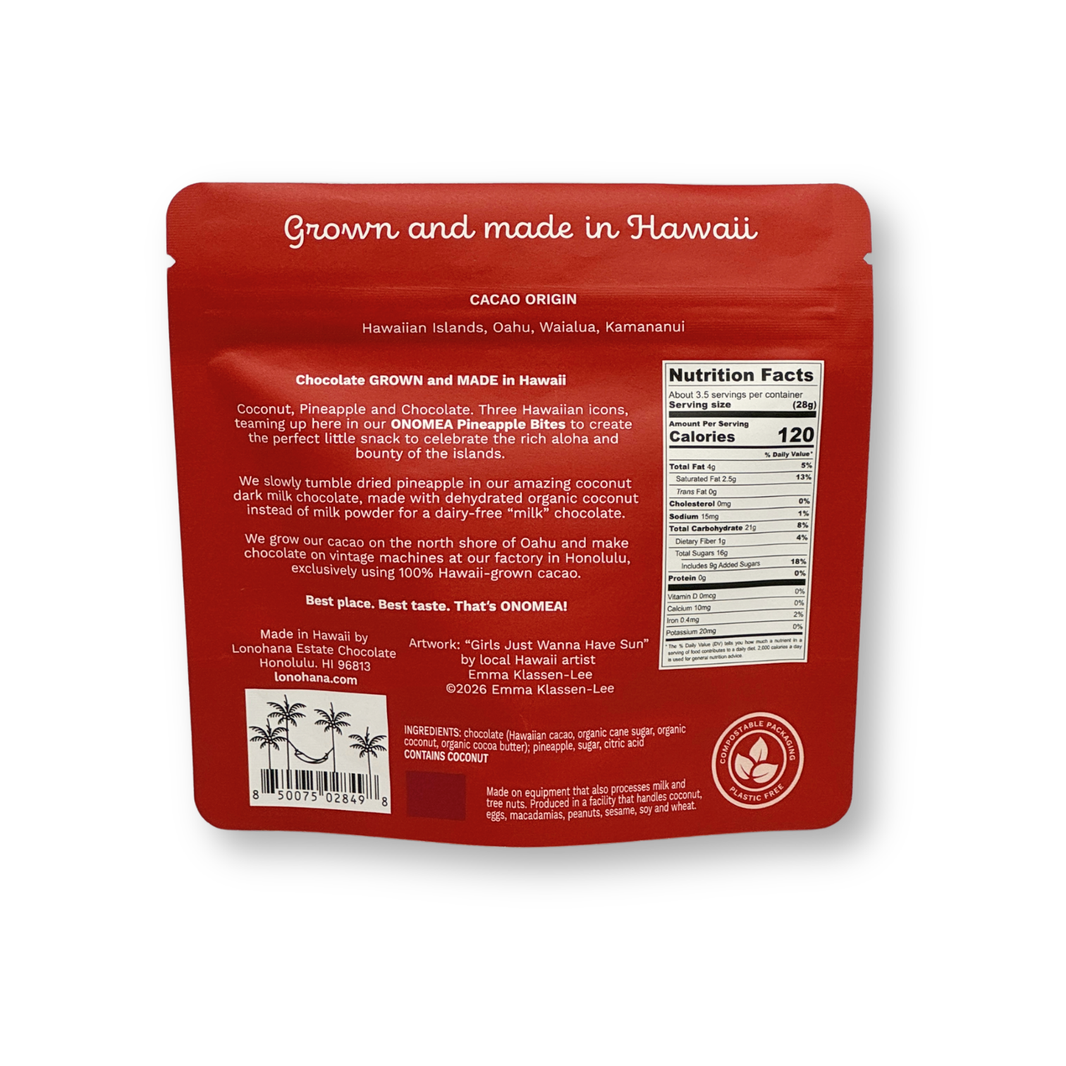 Coconut, Pineapple and Chocolate. Three Hawaiian icons, teaming up here in our ONOMEA Pineapple Bites to create the perfect little snack to celebrate the rich aloha and bounty of the islands.